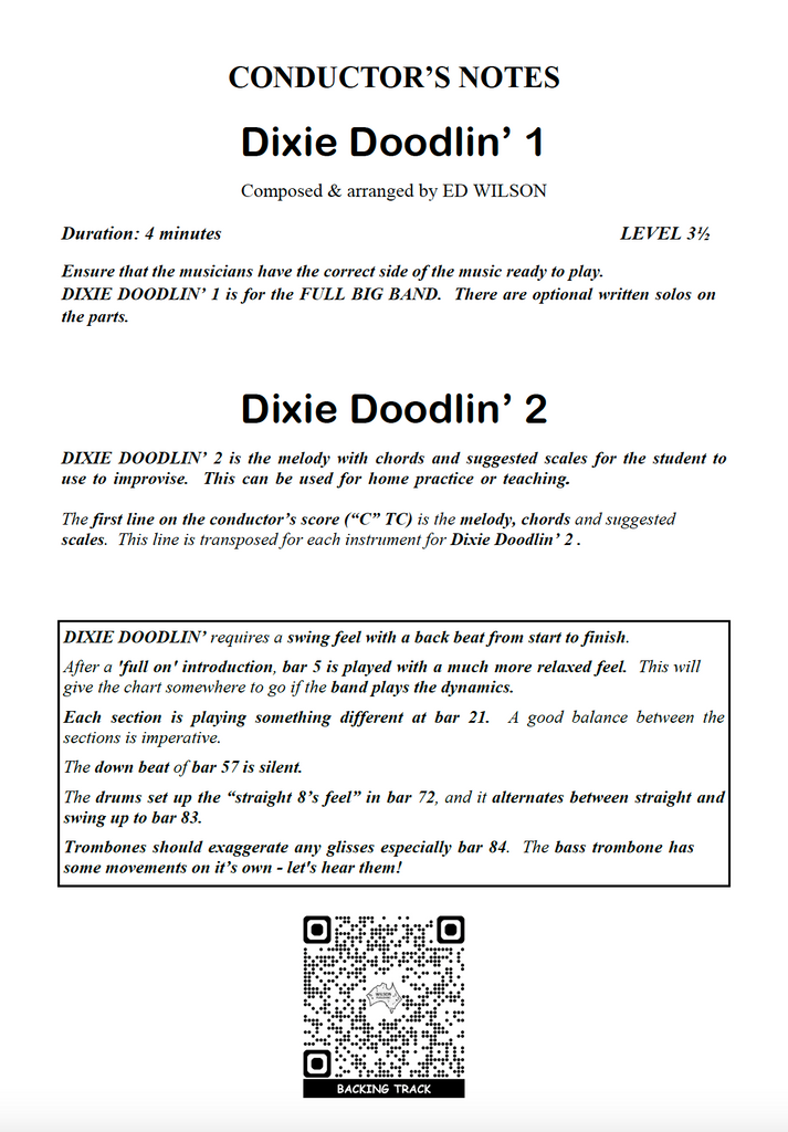 DIXIE DOODLIN' 1 is for the FULL BIG BAND. There are optional written solos on the parts.