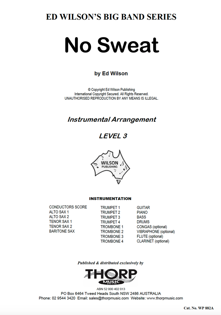 "No Sweat" is a great-sounding swing groove chart with a feature spot for your alto saxophonist (written or ad. lib.).